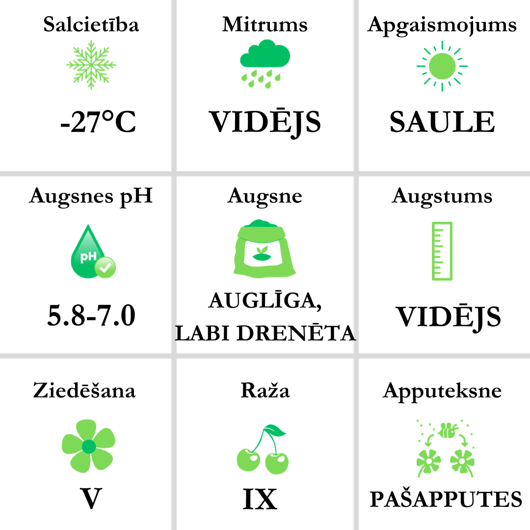 Sķirne zināma ar ļoti skaistiem sarkaniem augļem un augstu noturību pret salu.