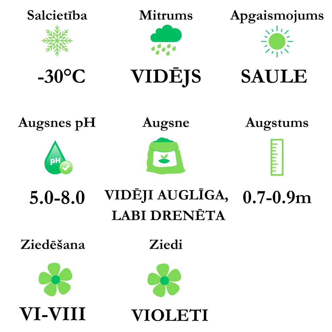 Ziedi - lavandas violeti, zied visas vasaras garumā