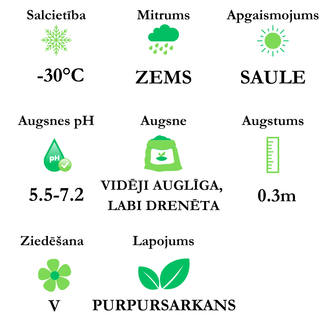 Lapojums -purpursarkans (ēnā būs vairāk zaļš).