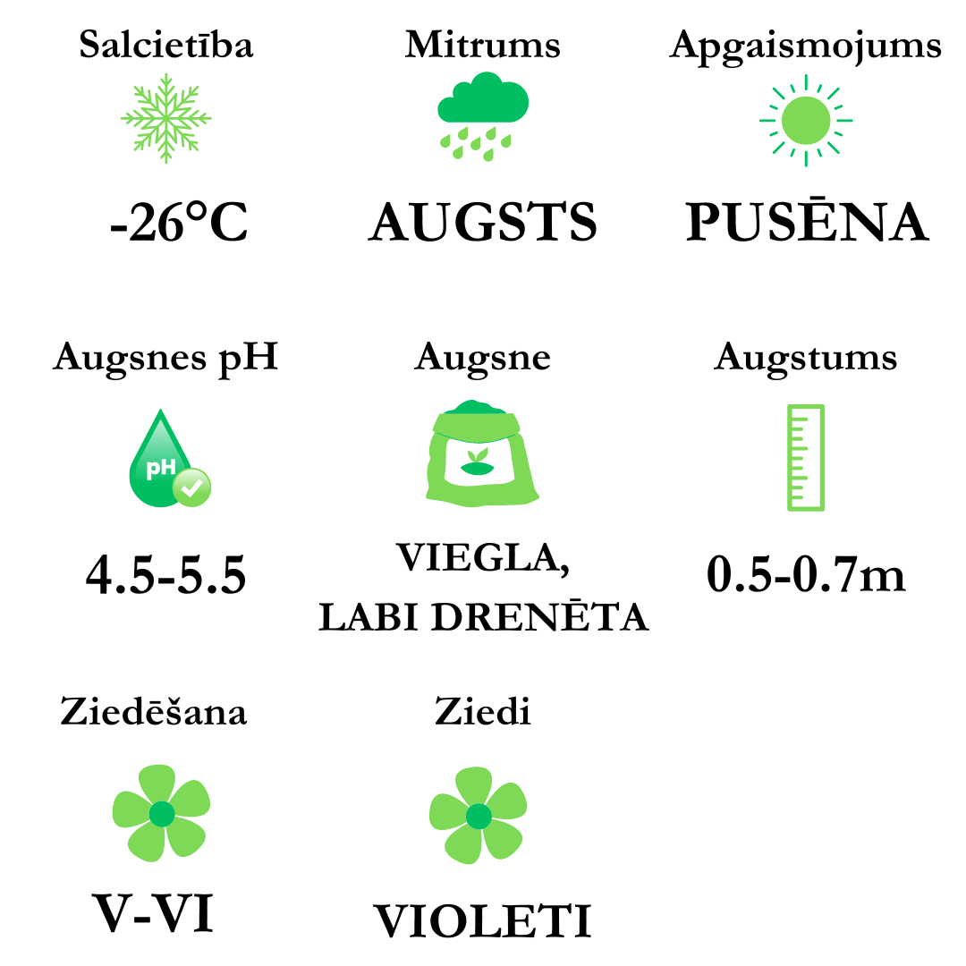 Ziedi - violeti. Zied maijā.